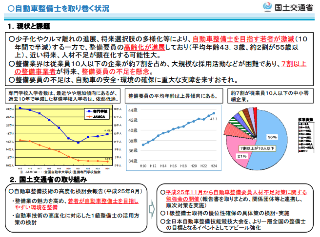 国土交通省のデータでも、整備業界の人手不足は深刻。