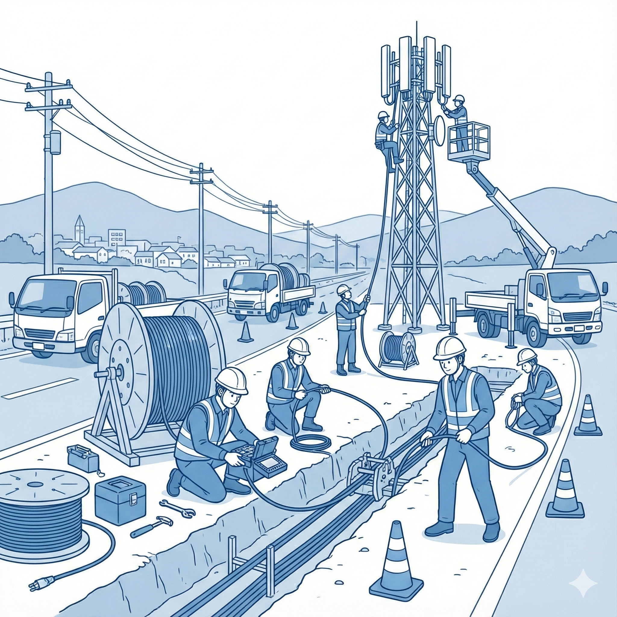 インターネット回線の敷設から、データセンターの運用管理、5G基地局の設置まで、通信インフラを支える幅広い現場で活躍します。