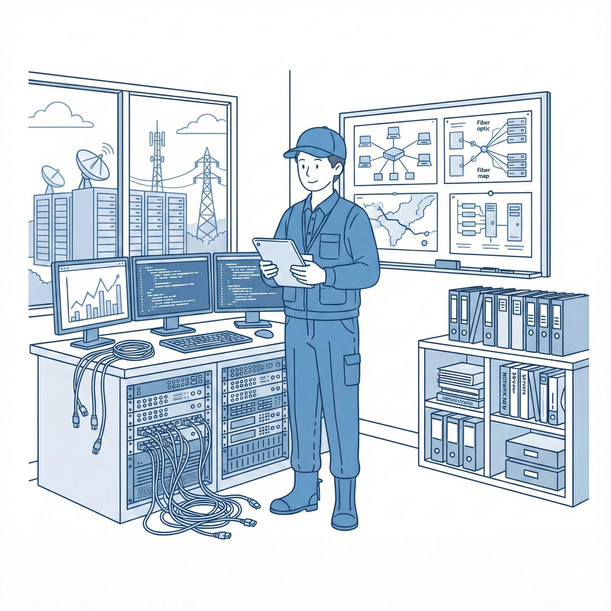 ネットワーク設備の管理、データセンターの運用、5G基地局の監督など、現代社会の通信インフラを支える重要な仕事を担います。