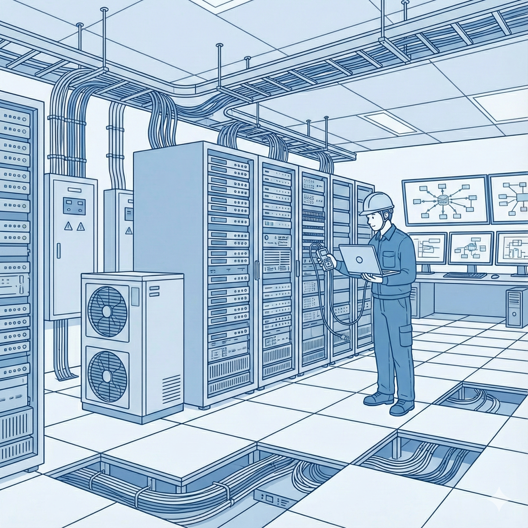 たとえば、データセンターのサーバー設備、通信事業者の交換機、企業のネットワークシステムなど、情報を処理・伝送する機器の管理を担当します。