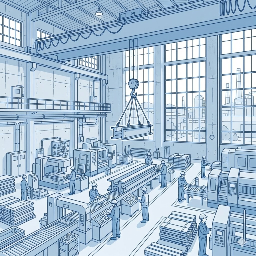 建設現場での鉄骨の吊り上げから、工場での重量機械の移動、港湾でのコンテナ作業まで、幅広い現場で活躍します。