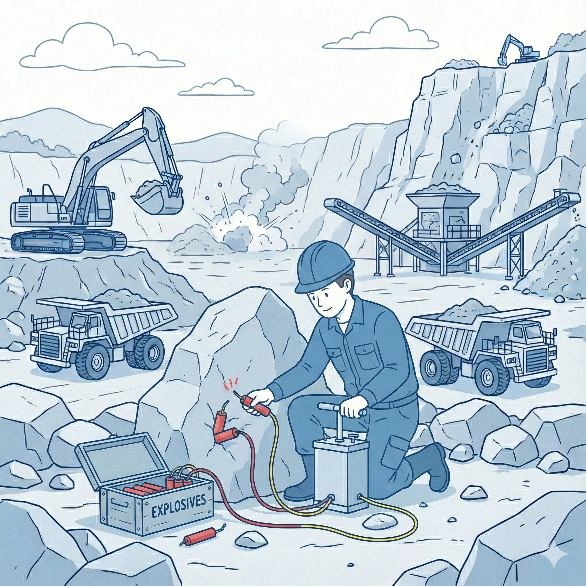鉱山や採石場での発破作業は、火薬類製造保安責任者の知識が直接活かせる分野です。