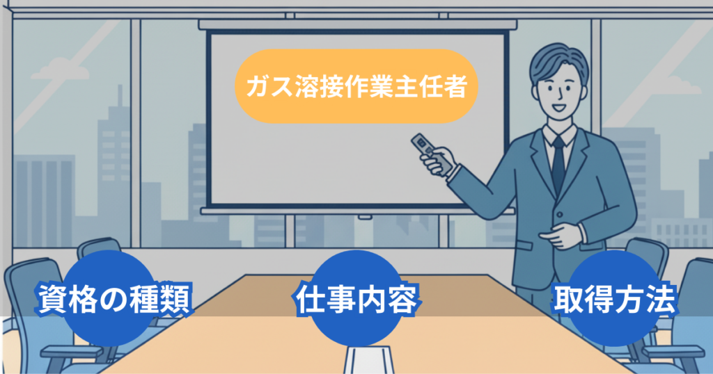 ガス溶接作業主任者とは、アセチレン溶接装置やガス集合溶接装置を使う現場で、安全管理と作業指揮を行う国家資格です。