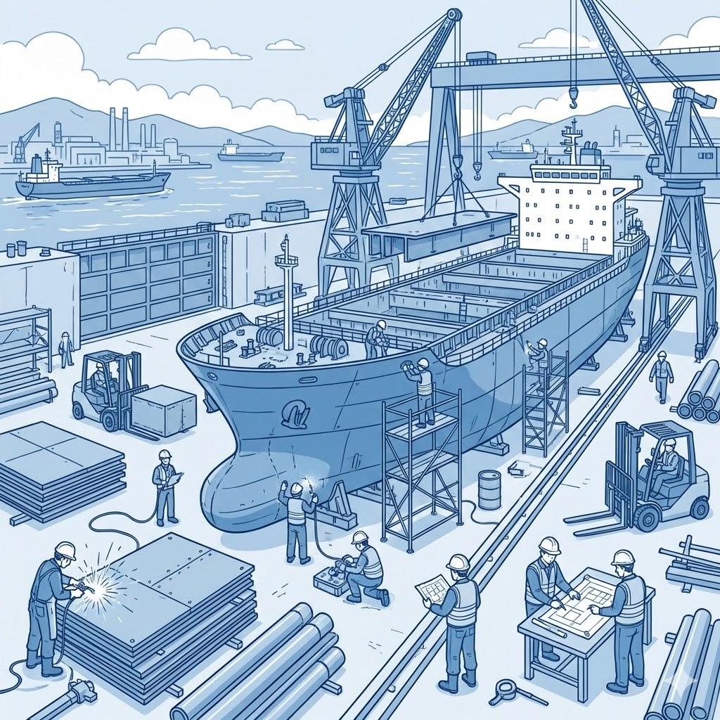 - ドック内での大型船の修繕工事
