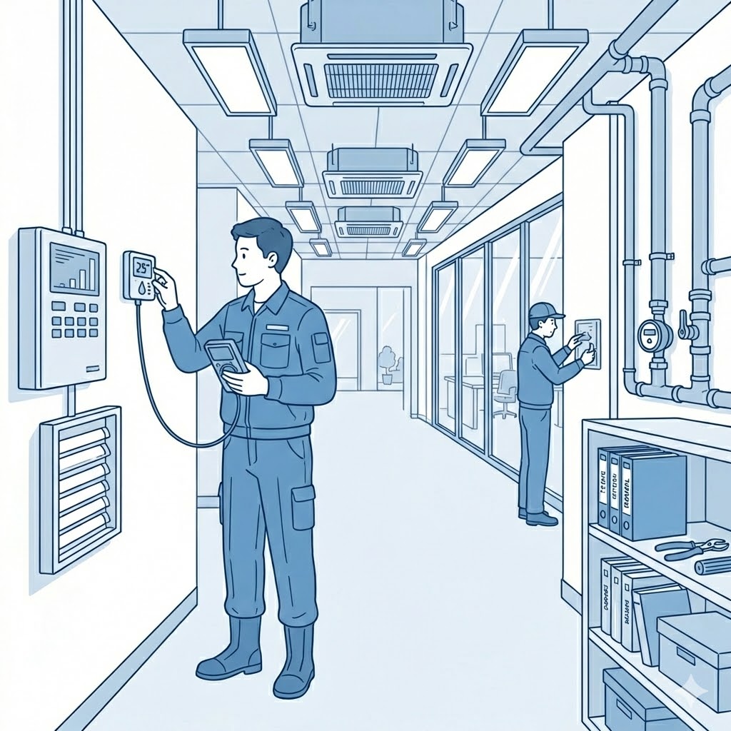 オフィスビルや商業施設の衛生管理・室内環境整備の需要が増加。建築物衛生法に基づく管理業務が広がっています。