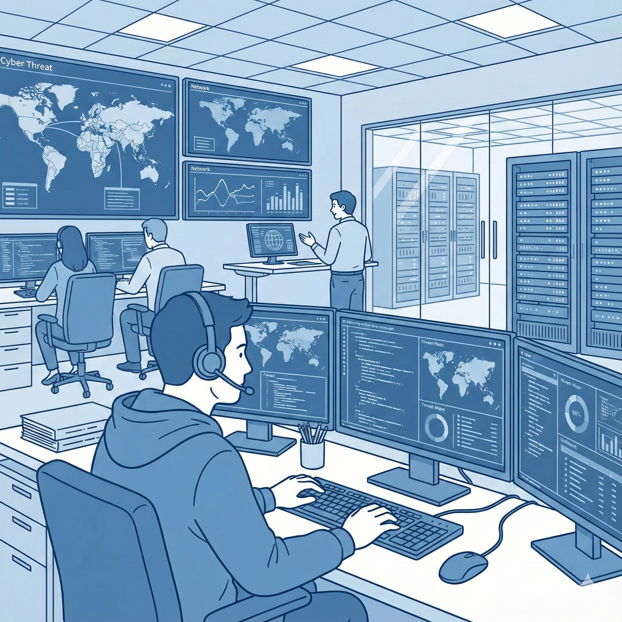 企業のセキュリティポリシー策定、システムの脆弱性診断、インシデント対応など、組織の情報資産を守る重要な仕事を担います。